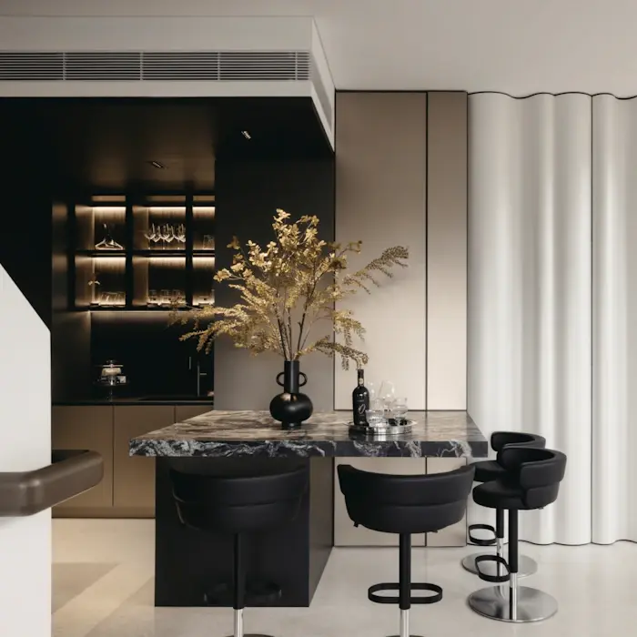 Bu siyah renk, dokulu görsel duygusu ve yeşilimsi dokunuşlarla çevrenize gerçekçilik ve güç katacak.