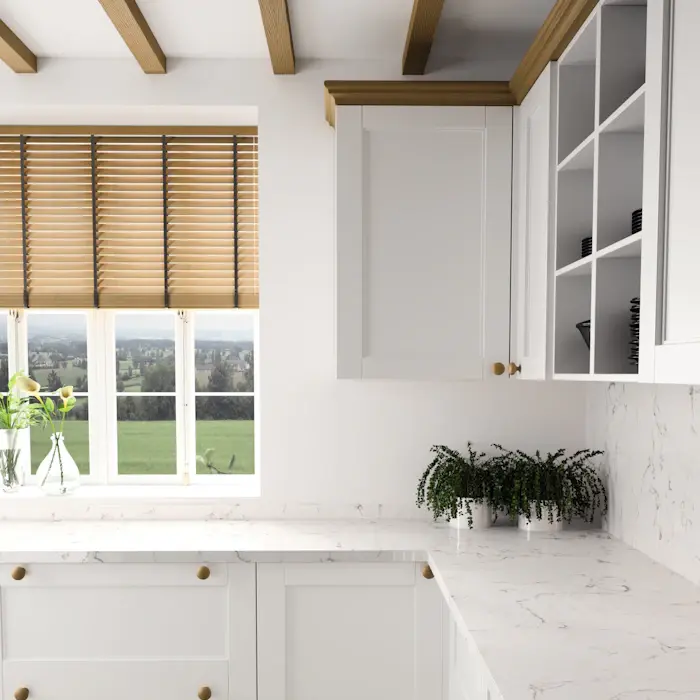 Beyaz ve gri tonlu arka planın düzensiz koyu gri damarlarla oluşturduğu kompozisyon çarpıcı bir mermer etkisi yaratır.
